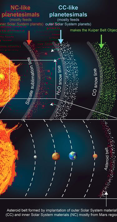 This animation shows the trapping of a distant planet during a dynamical instability in the early Solar System, as modeled in Izidoro et al. (2025, Nature Astronomy). Starting from a compact system of fully formed gas giants, the simulation shows a hypothetical Planet-9 being scattered outward by Jupiter at ~0.4 Myr. Subsequent stellar encounters with members of a 200-star birth cluster incrementally raise its pericentre, with a decisive encounter at ~2 Myr placing it on a distant, long-lived orbit. The host star cluster disperses by 3 Myr, leaving behind a Solar System architecture closely resembling the real one.your text here...